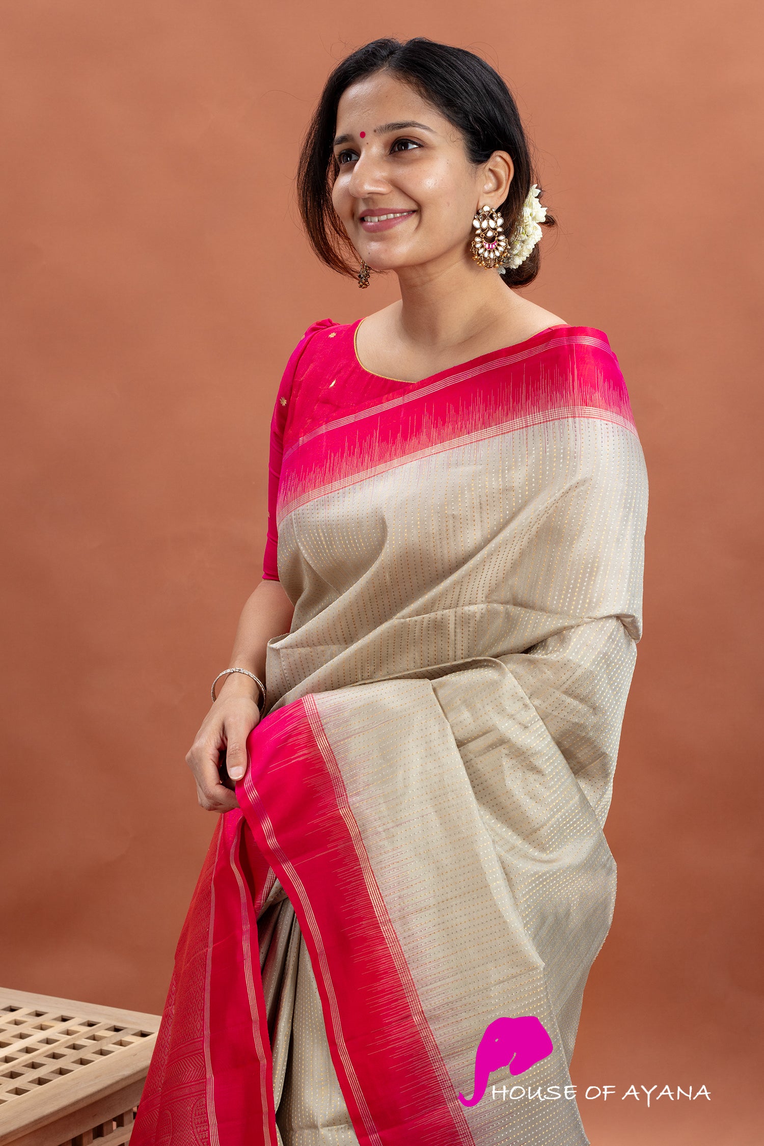 - The saree comes with its own blouse piece. The one worn by the model is for styling purpose only.