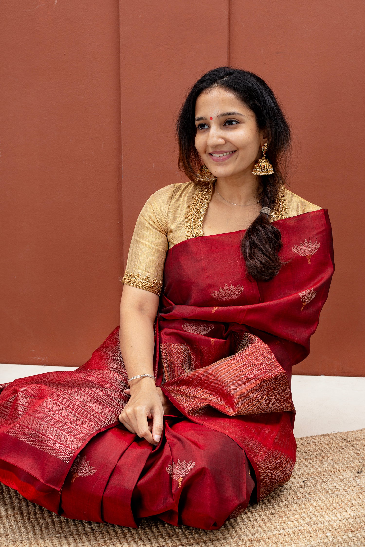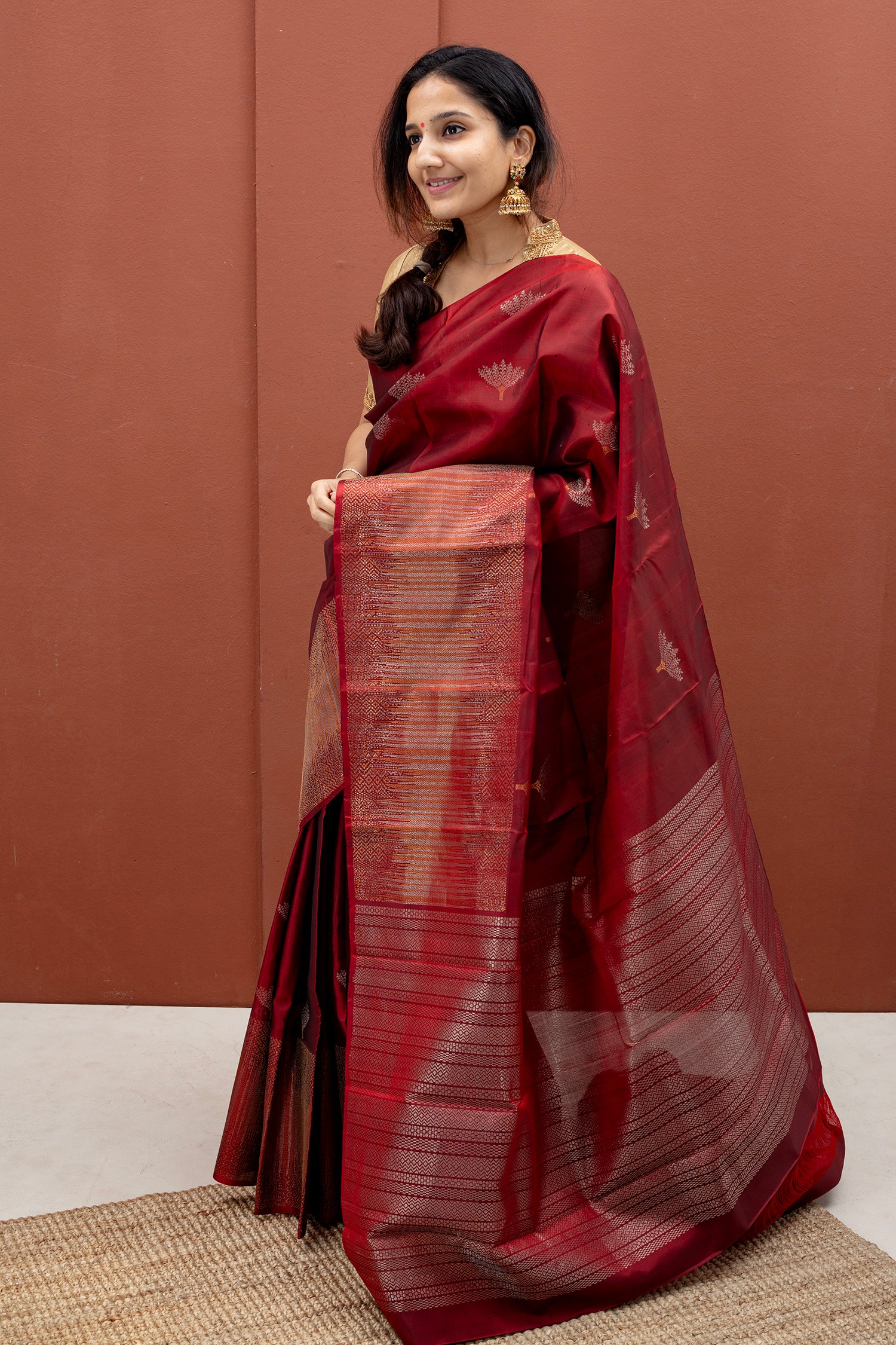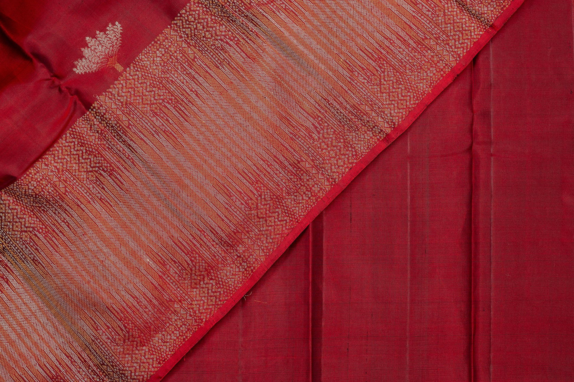 - Kanjivaram lightweight silk saree, handwoven with zari borders and pallu