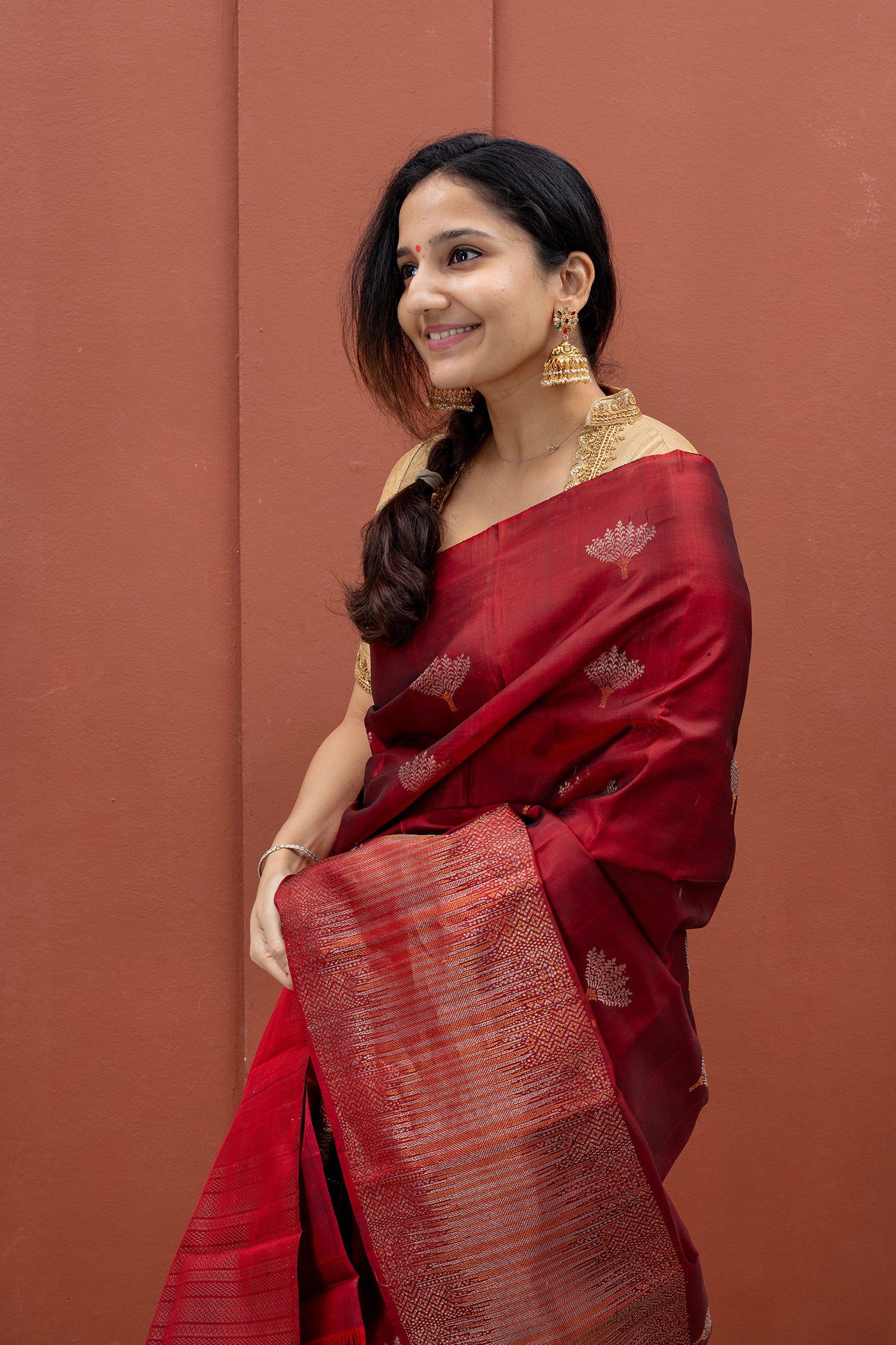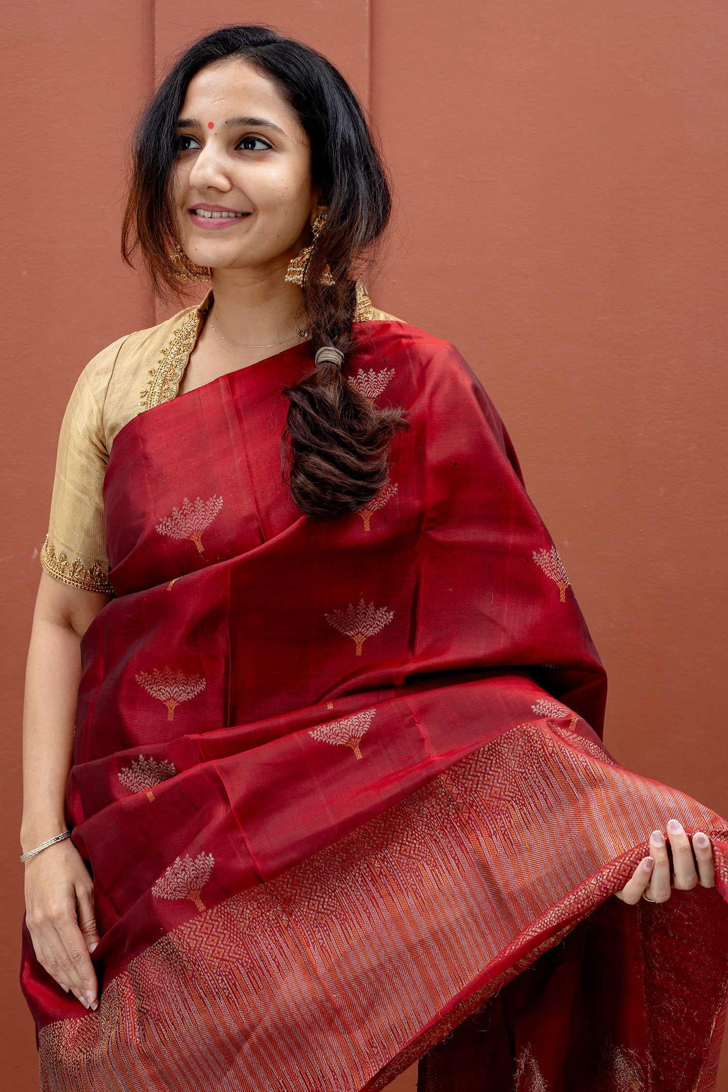 - Zari designs woven on the body