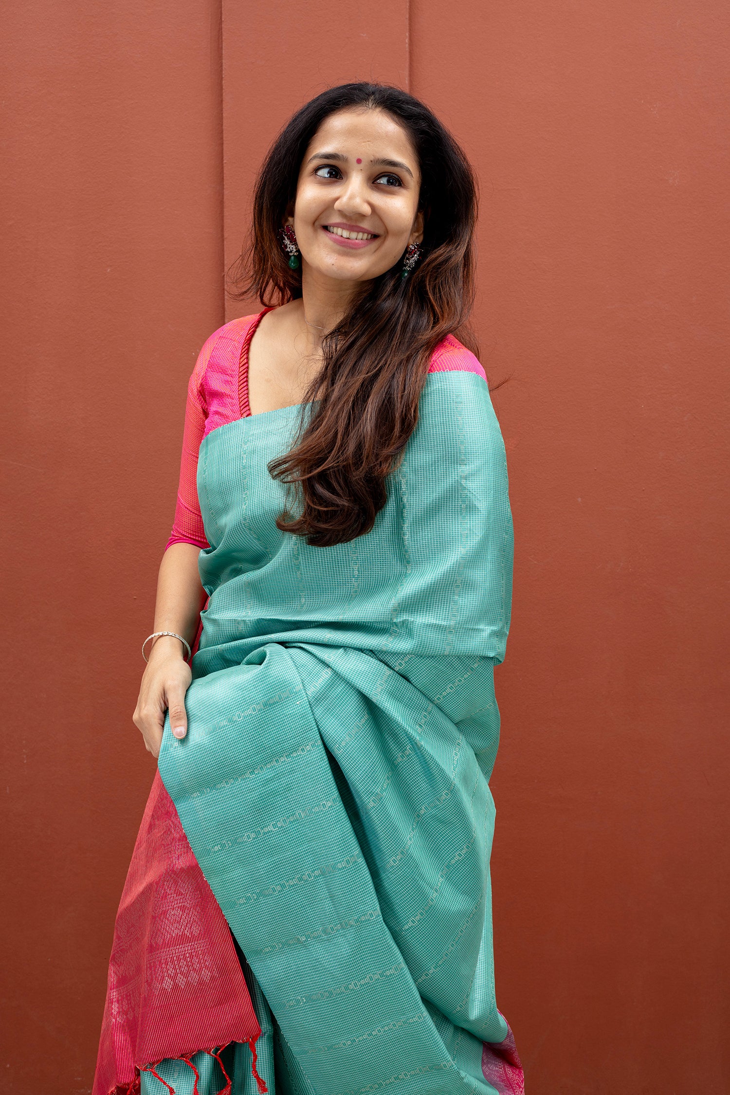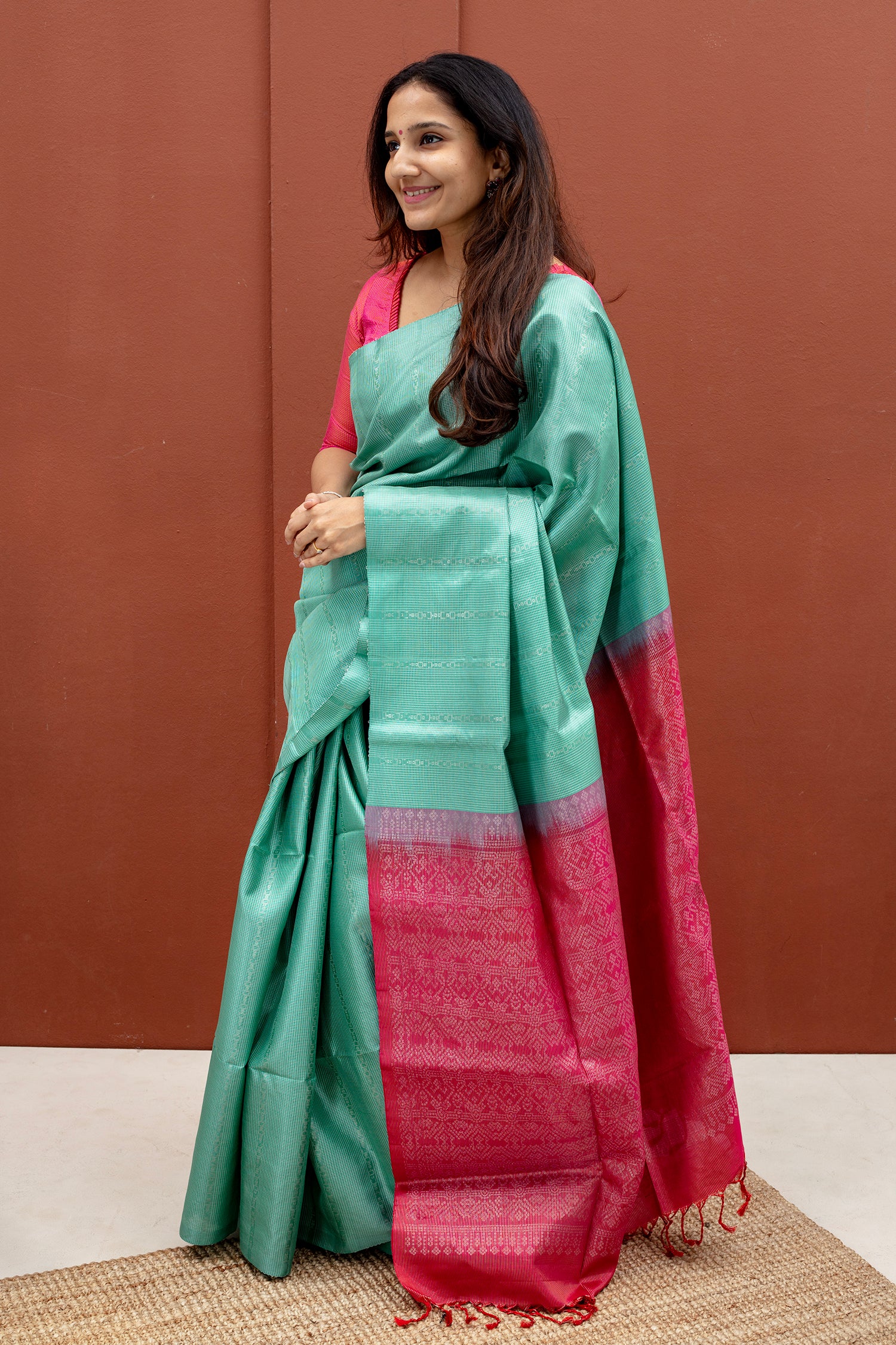 - Contrast silk blouse included (same color as pallu)