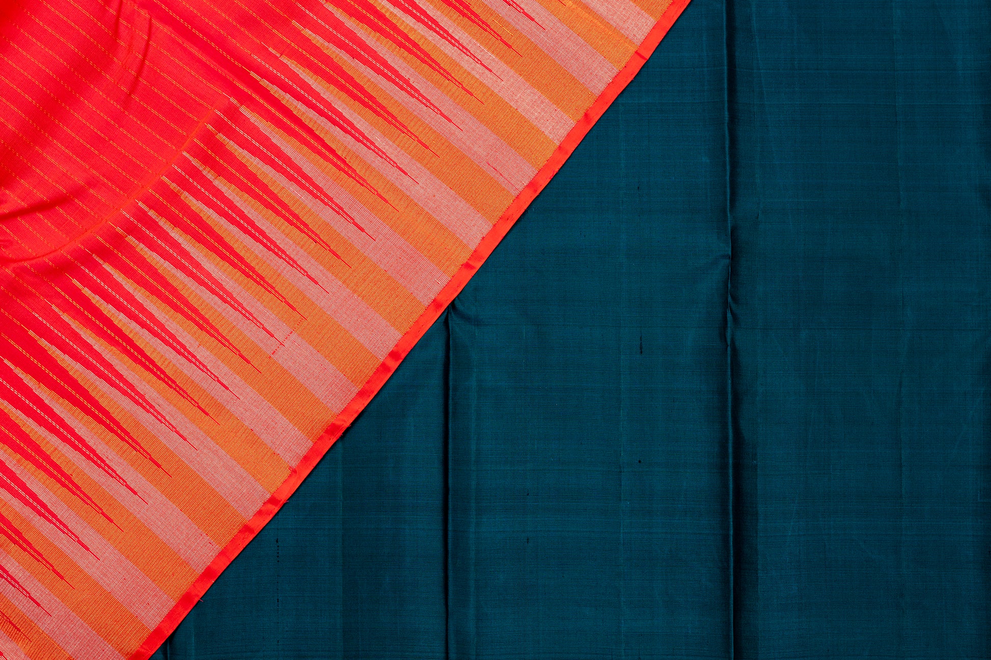- Kanjivaram lightweight silk saree, handwoven with zari borders and contrast pallu