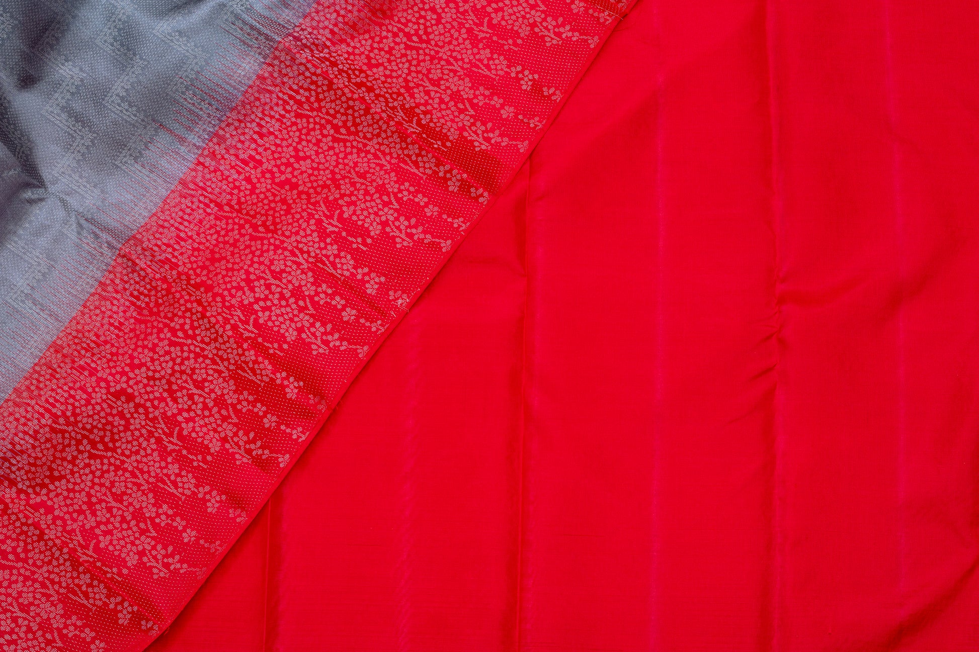 - Kanjivaram lightweight silk saree, handwoven with contrast zari borders and grand pallu