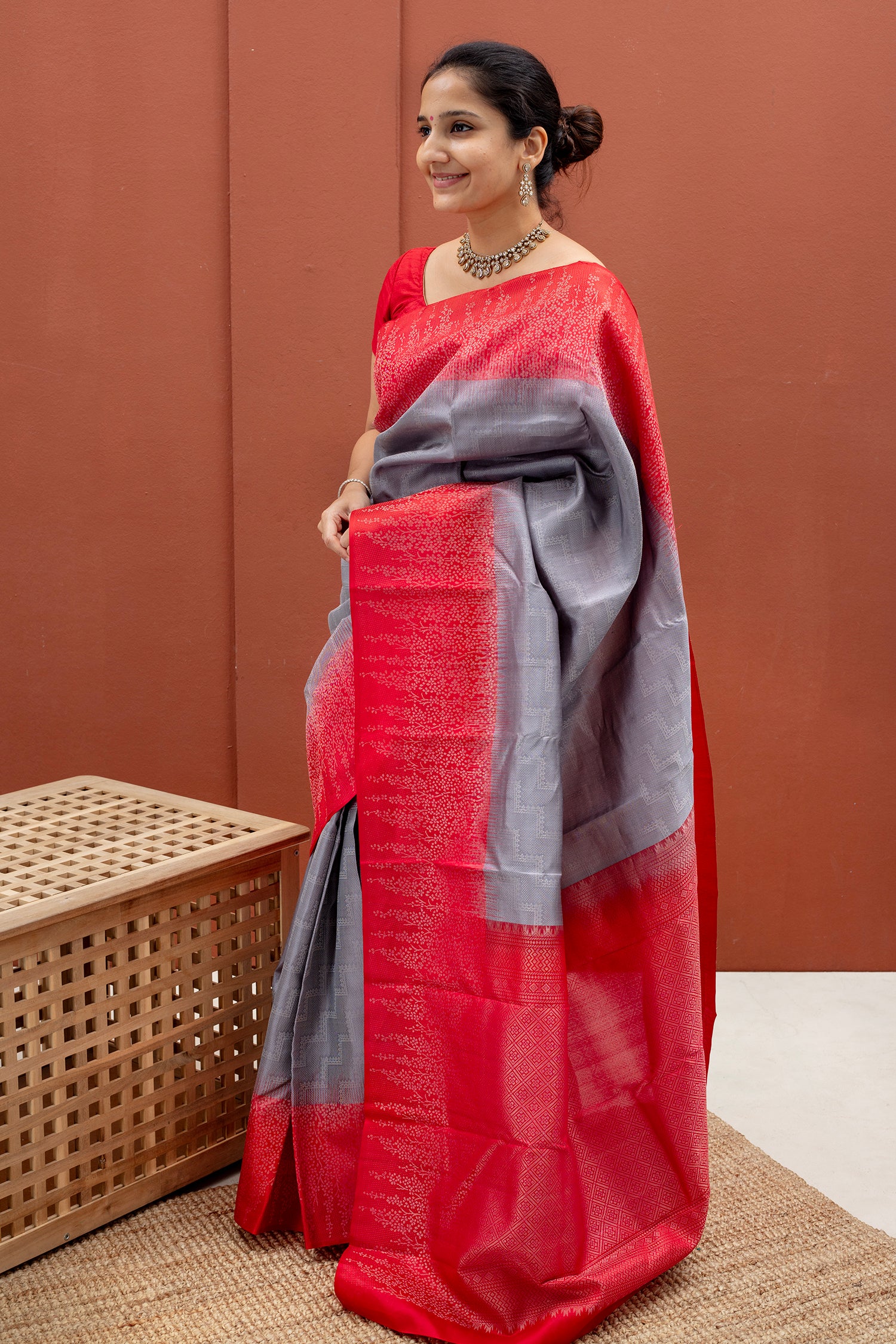 - The saree comes with its own blouse piece. The one worn by the model is for styling purpose only.