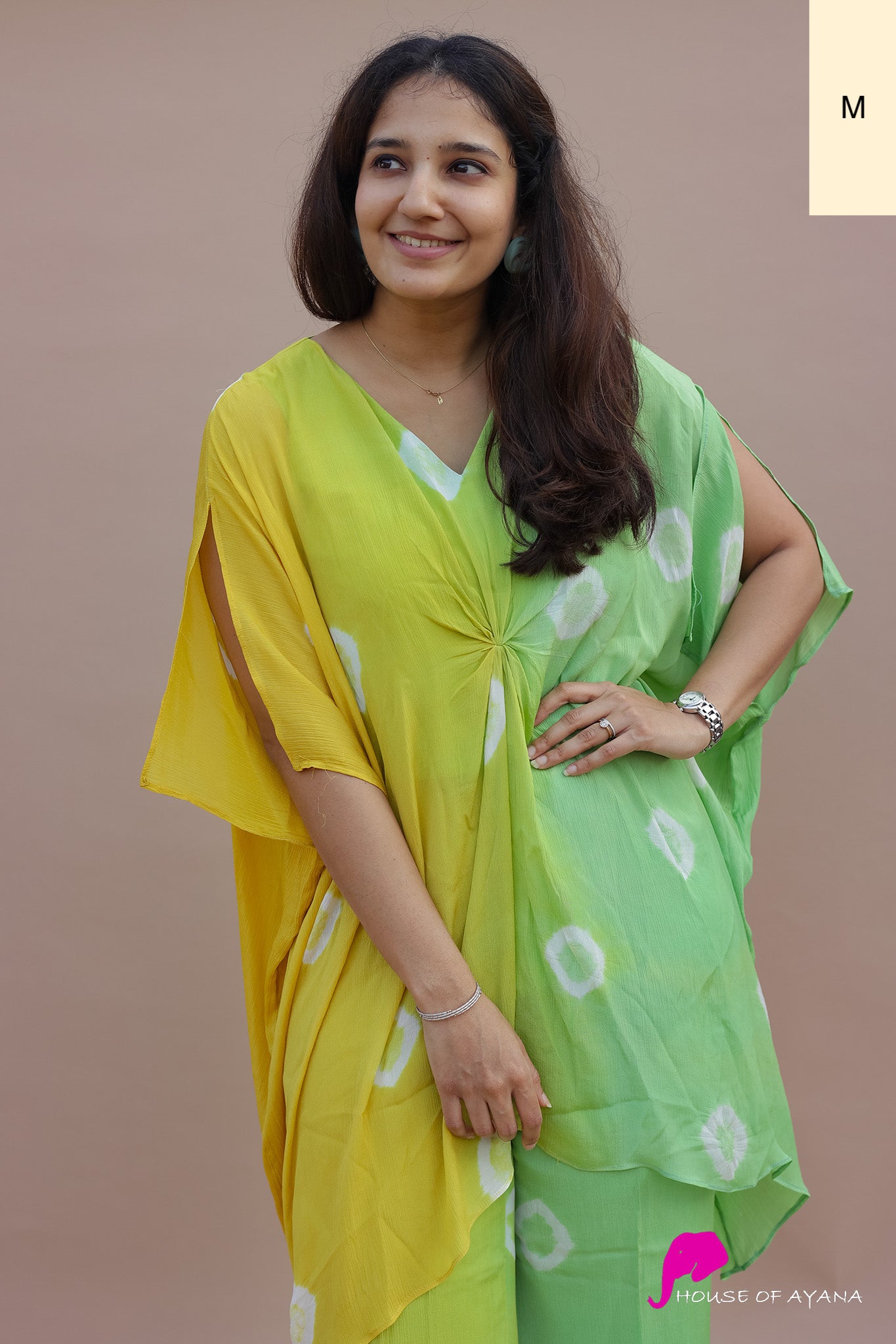 - Elevate your style effortlessly with the most versatile addition to your wardrobe - chiffon tie dye draped top paired with straight trousers.