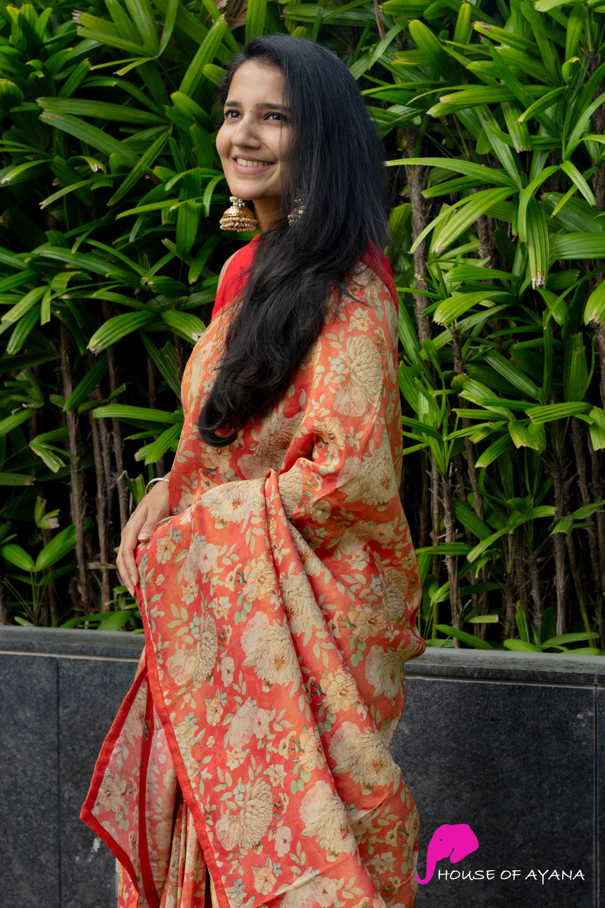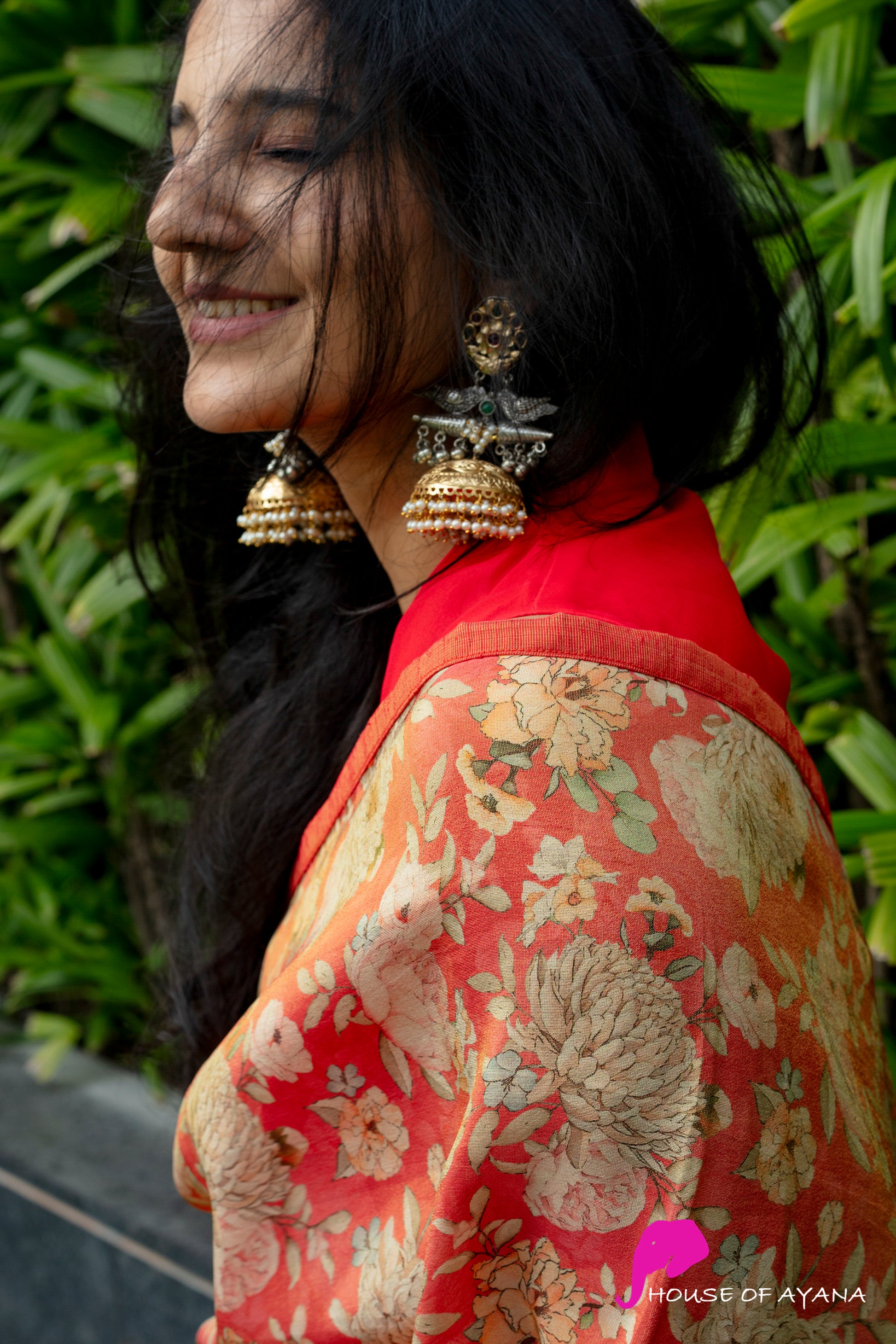 Botanica Antiqua is a festive delight in bright burnt orange with florals all over. Its subtle tissue sheen in sunlight, fall and lightweight make it a dreamy piece for festivities or everyday.