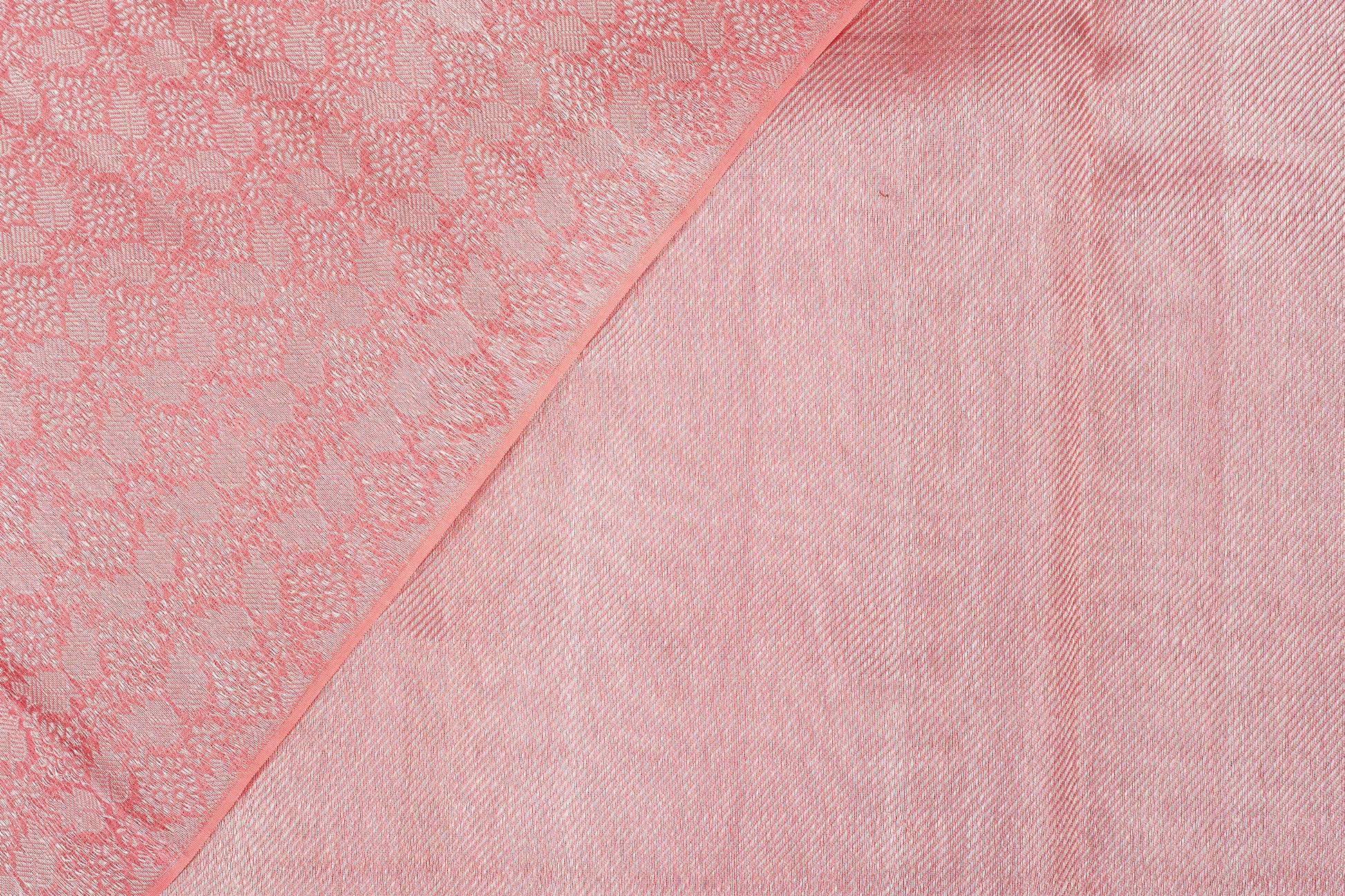 A timeless masterpiece, this handwoven Kanjivaram by organza silk saree beautifully balances color with vibrance. The body glows in a pastel pink, brought to life with intricately woven silver zari motifs all over the body, and finished with a grand zari pallu of the same color. The lustrous texture of organza Kanjivaram silk drapes gracefully, making it perfect for festive occasions or special celebrations.