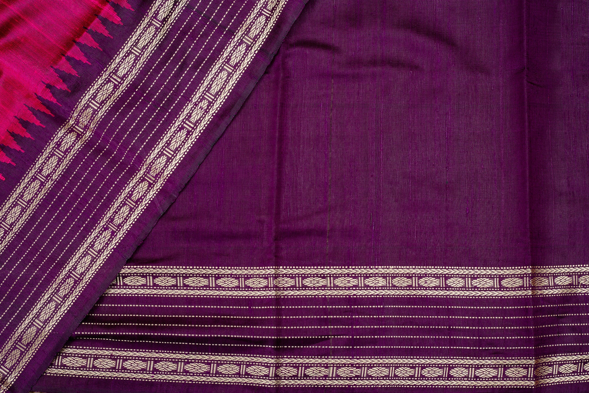 - Kanjivaram lightweight silk saree, handwoven with contrast borders and grand zari pallu