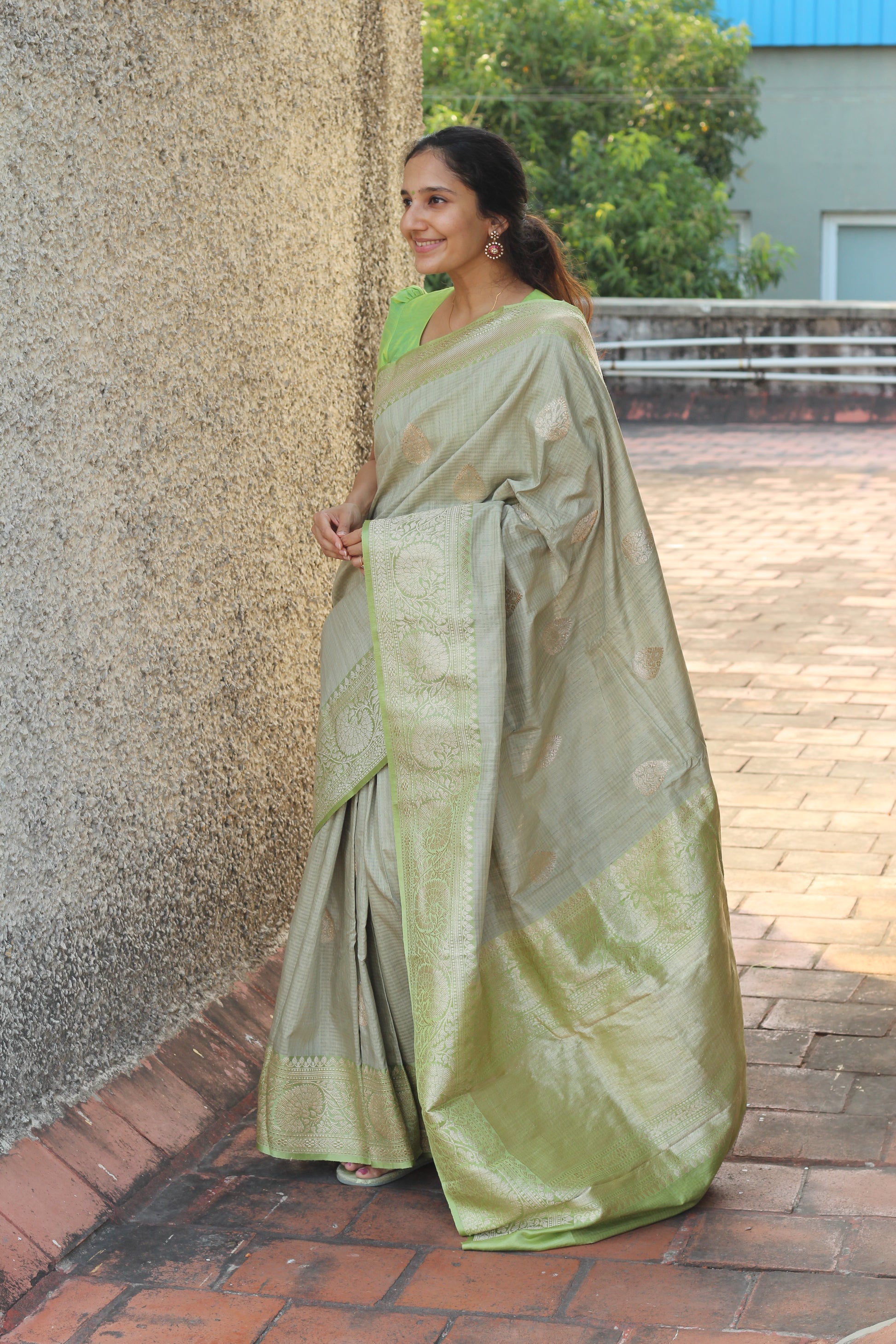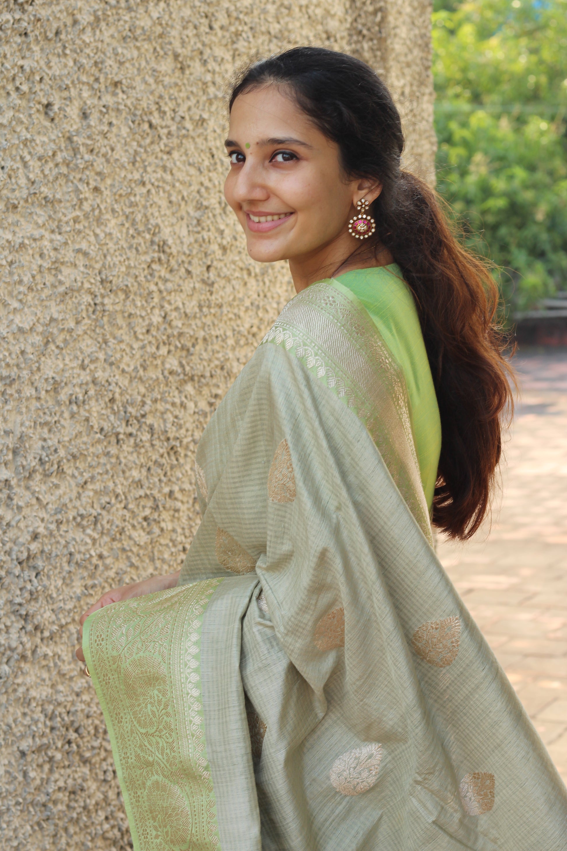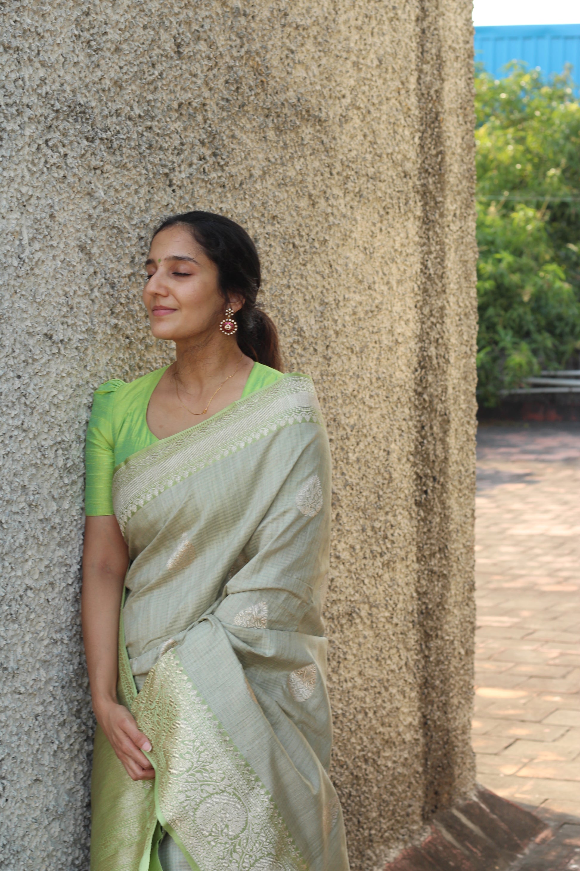 - Contrast banaras silk blouse with coordinated borders (same color as pallu)