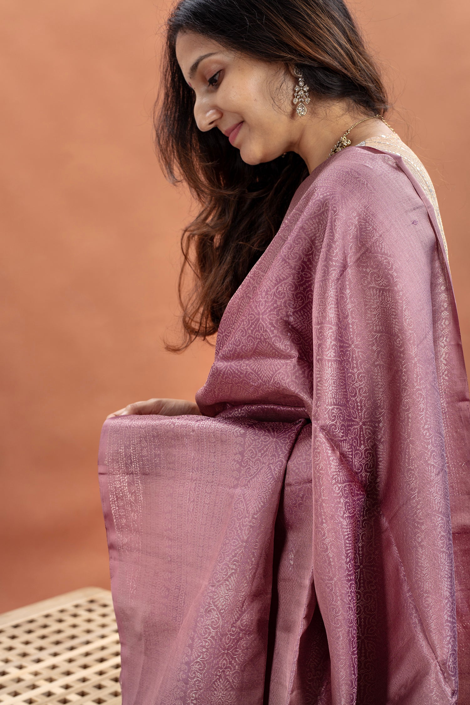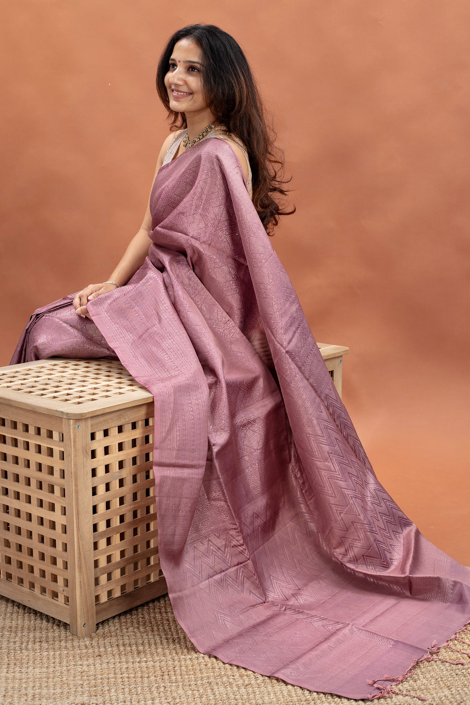 - Kanjivaram lightweight silk saree, handwoven with a grand zari pallu