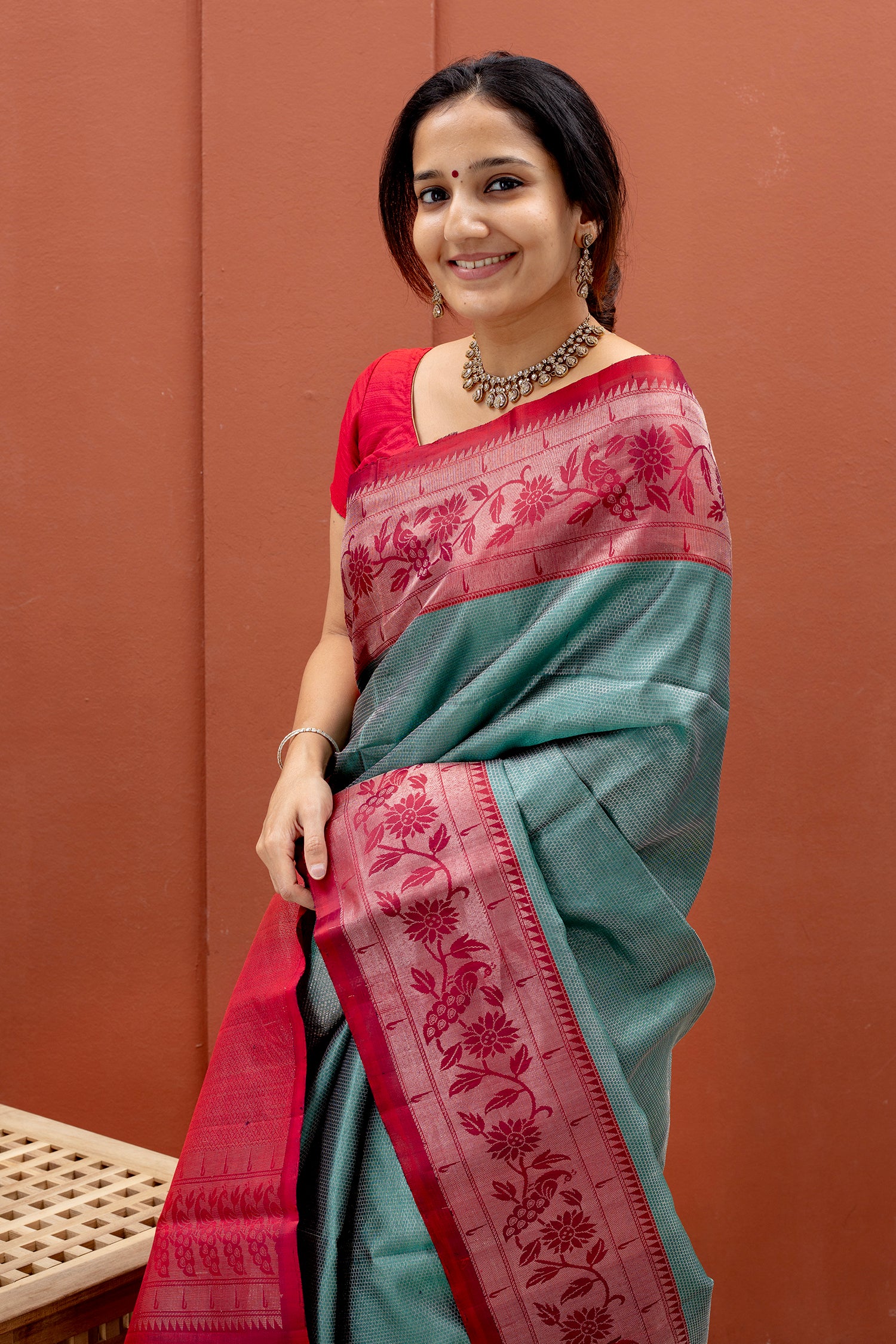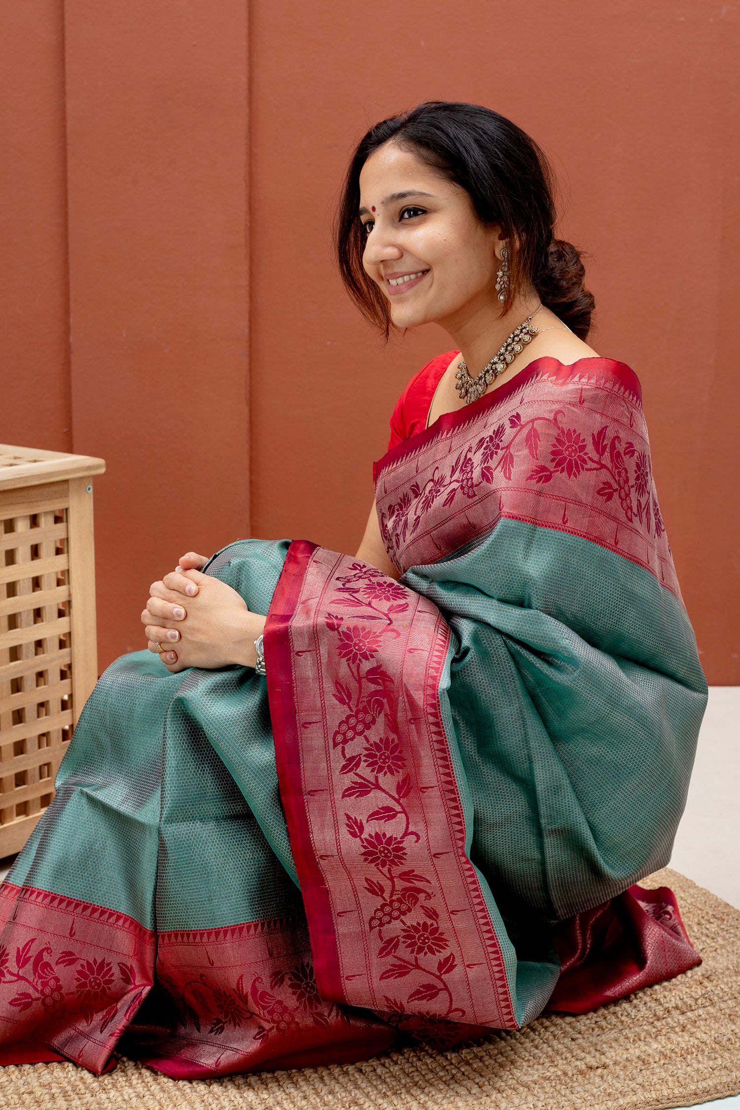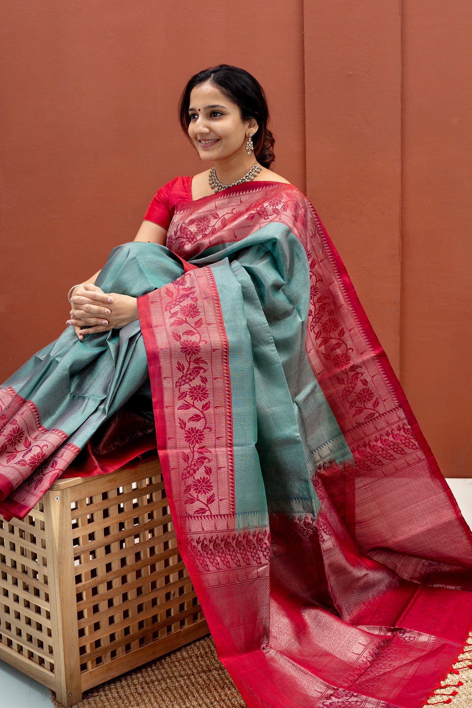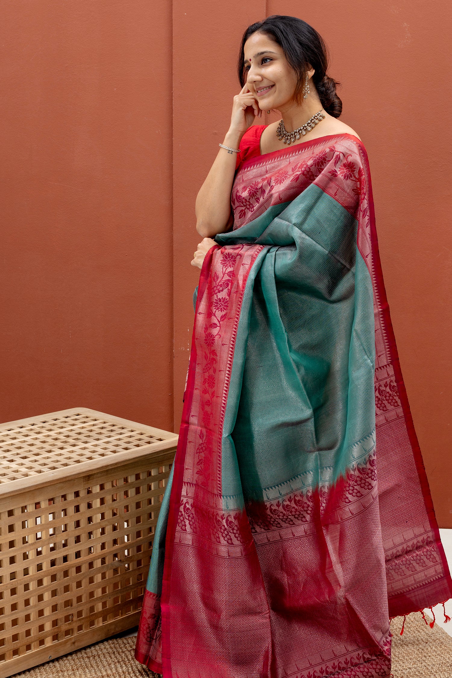 - Contrast silk blouse included (same color as pallu)
