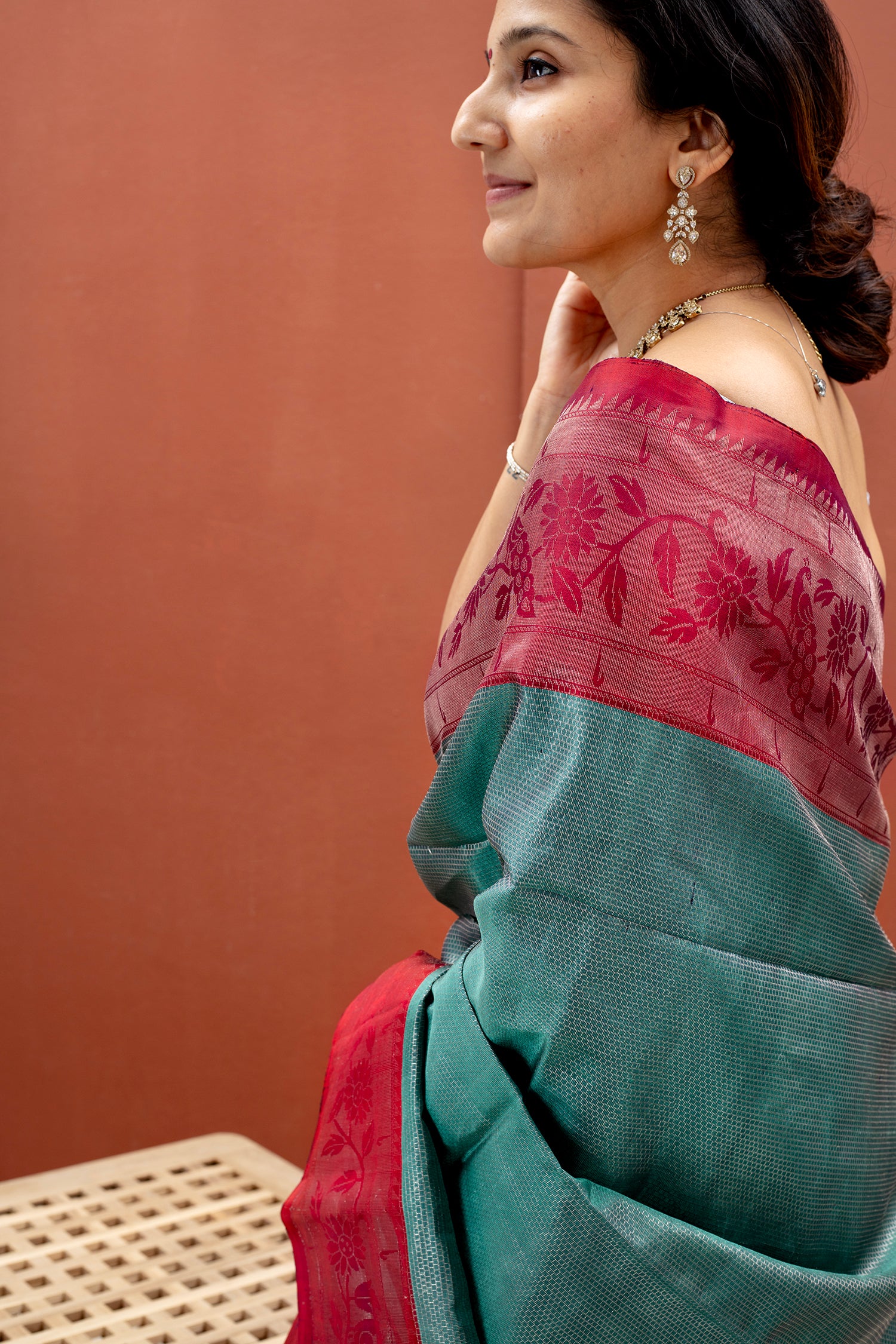 - Zari motifs woven all over