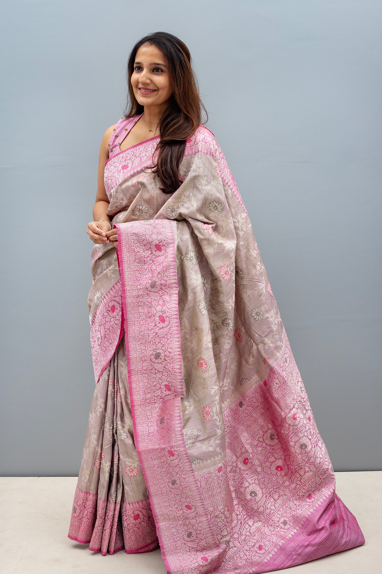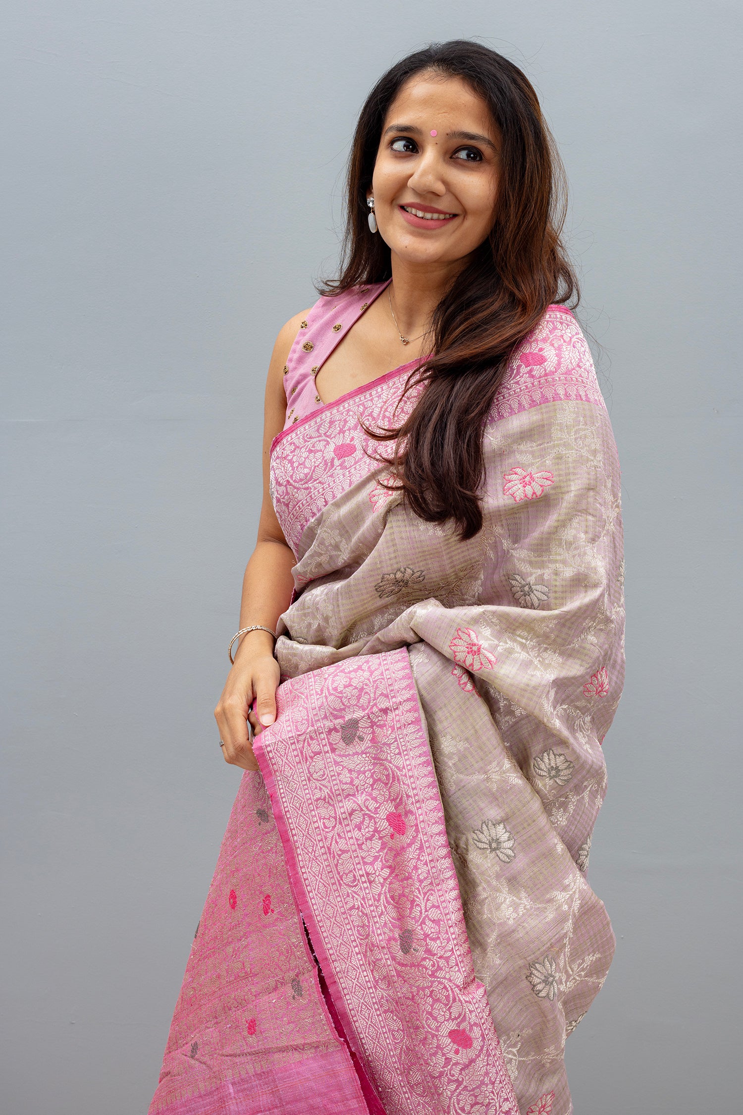 - The saree comes with its own blouse piece. The one worn by the model is only for styling purpose.