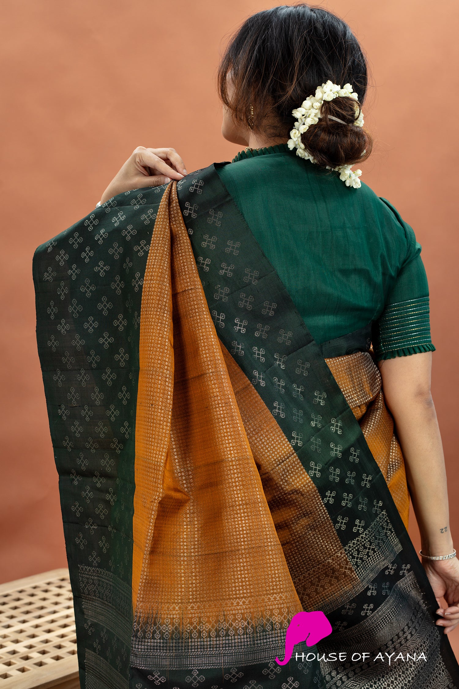 - The saree comes with its own blouse piece. The one worn by the model is for styling purpose only.