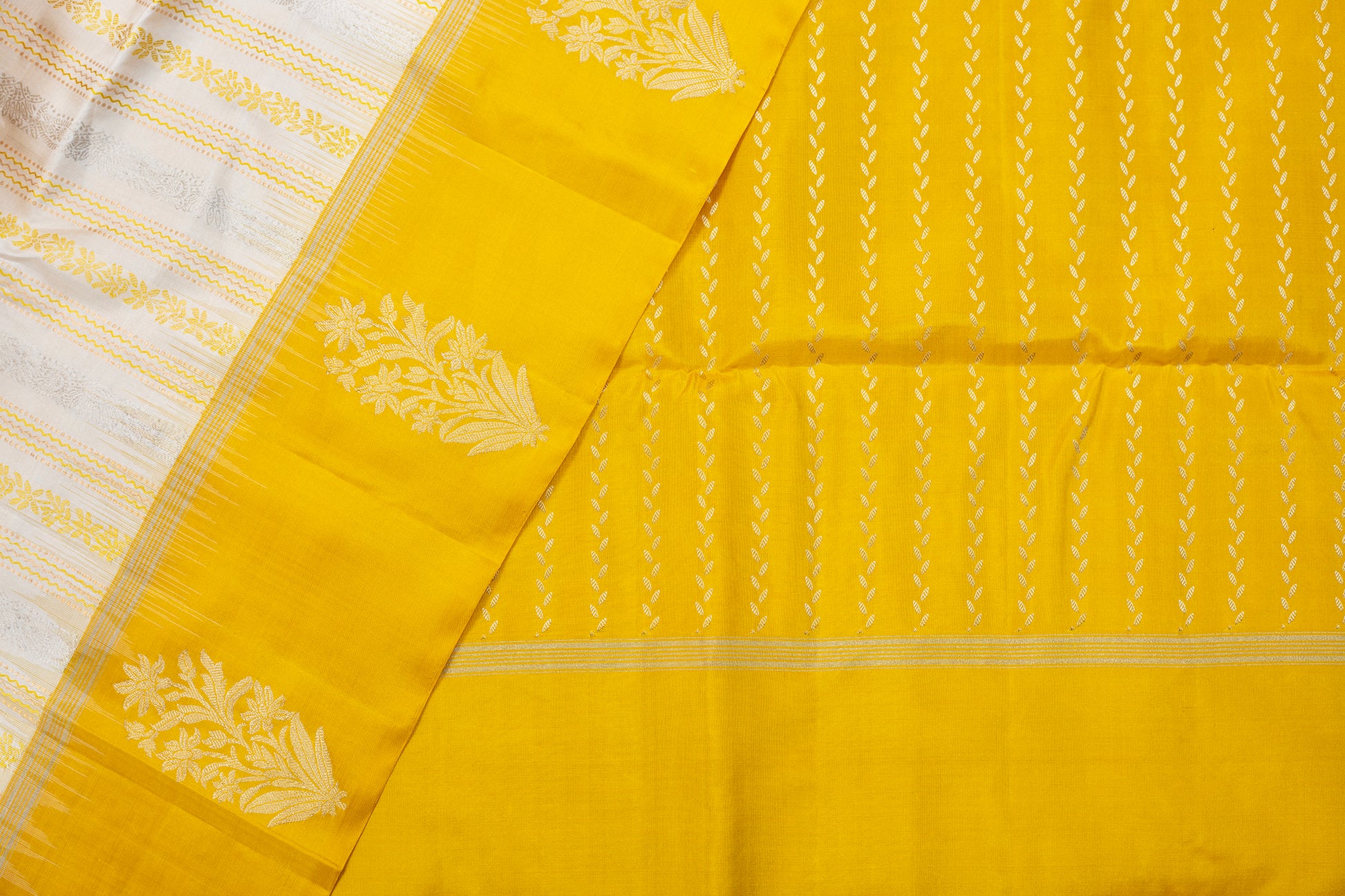 - Kanjivaram lightweight silk saree, handwoven with contrast zari borders a grand pallu