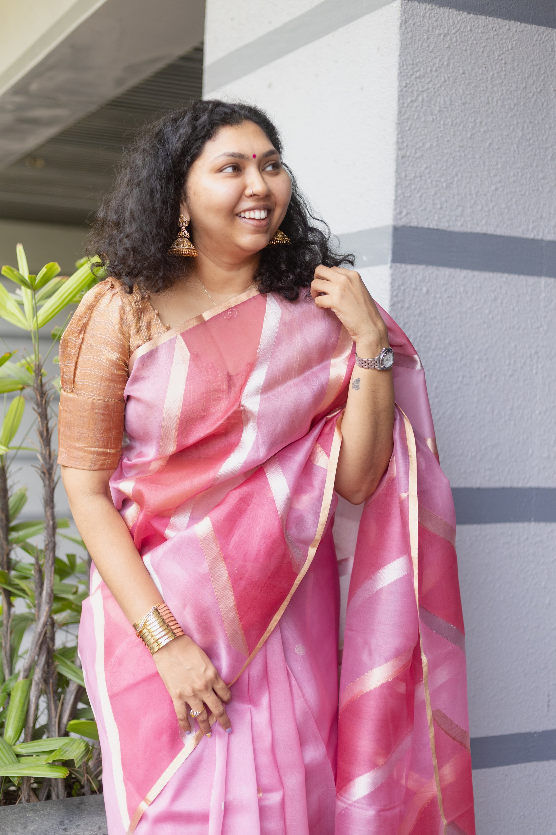 - The saree comes with its own blouse piece. The one worn by the model is only for styling purpose. The same is available to purchase from our Ready to Wear Category.