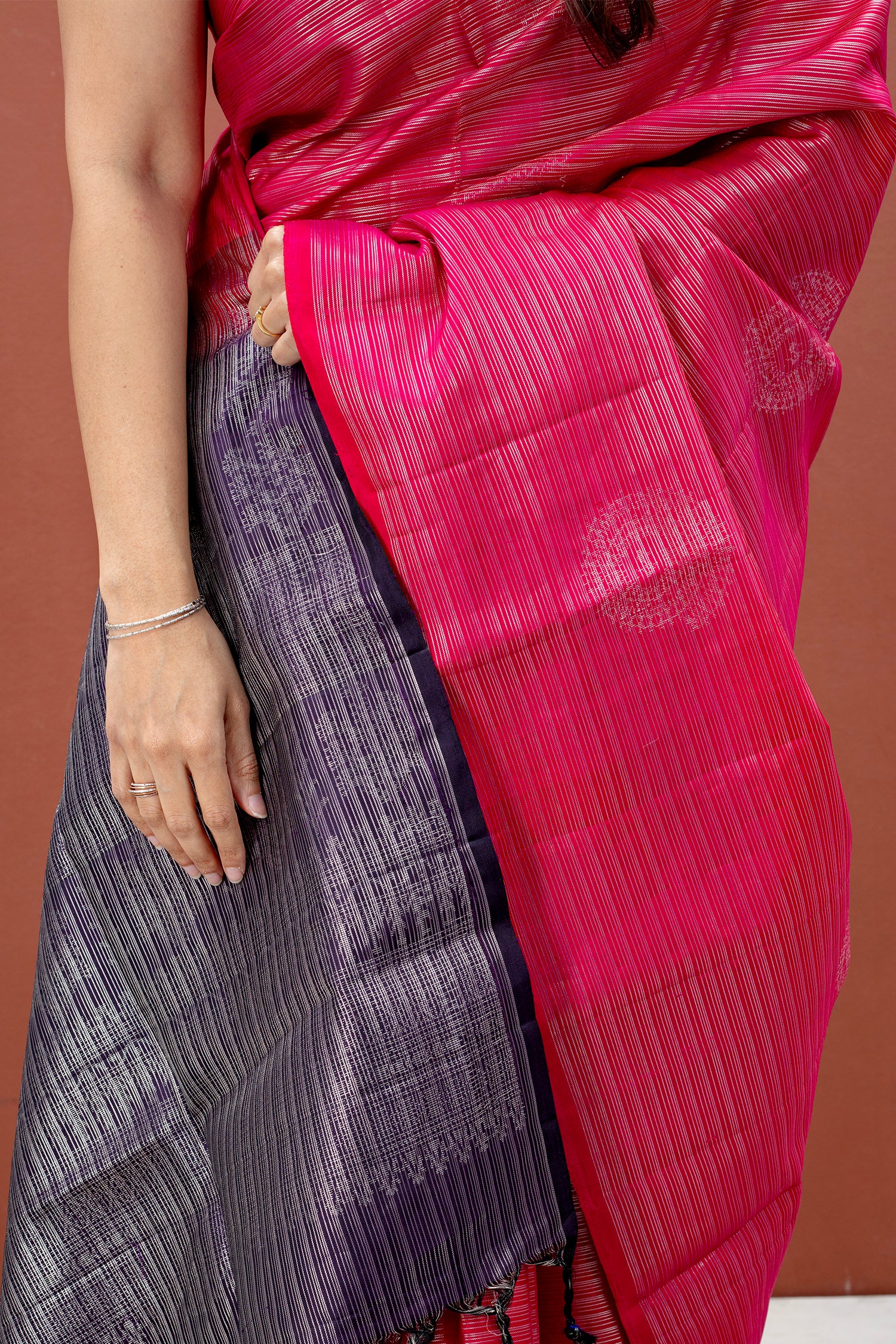 - The saree comes with its own blouse piece. The one worn by the model is for styling purpose only.
