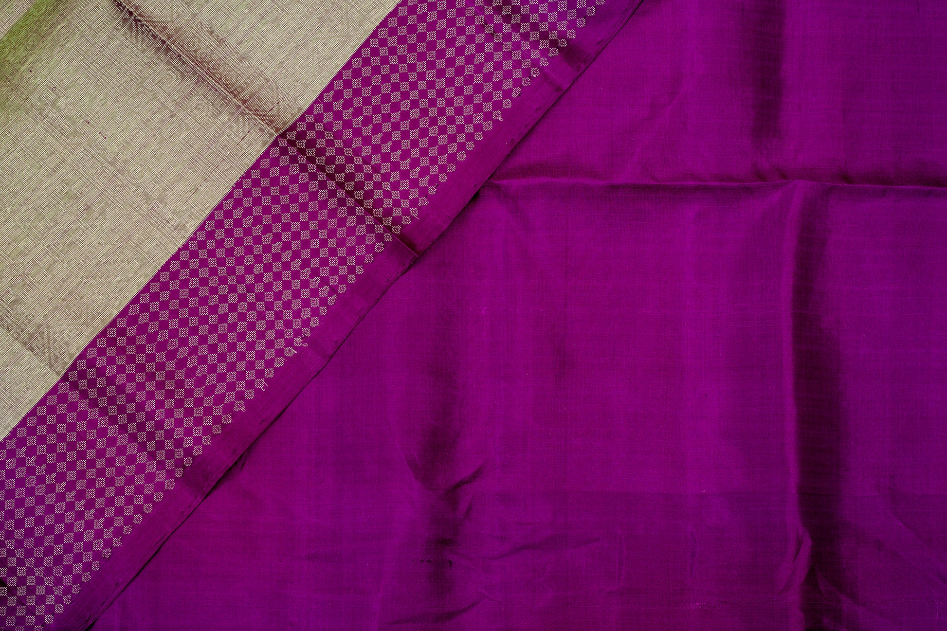 - Kanjivaram lightweight silk saree, handwoven with contrast zari borders and pallu