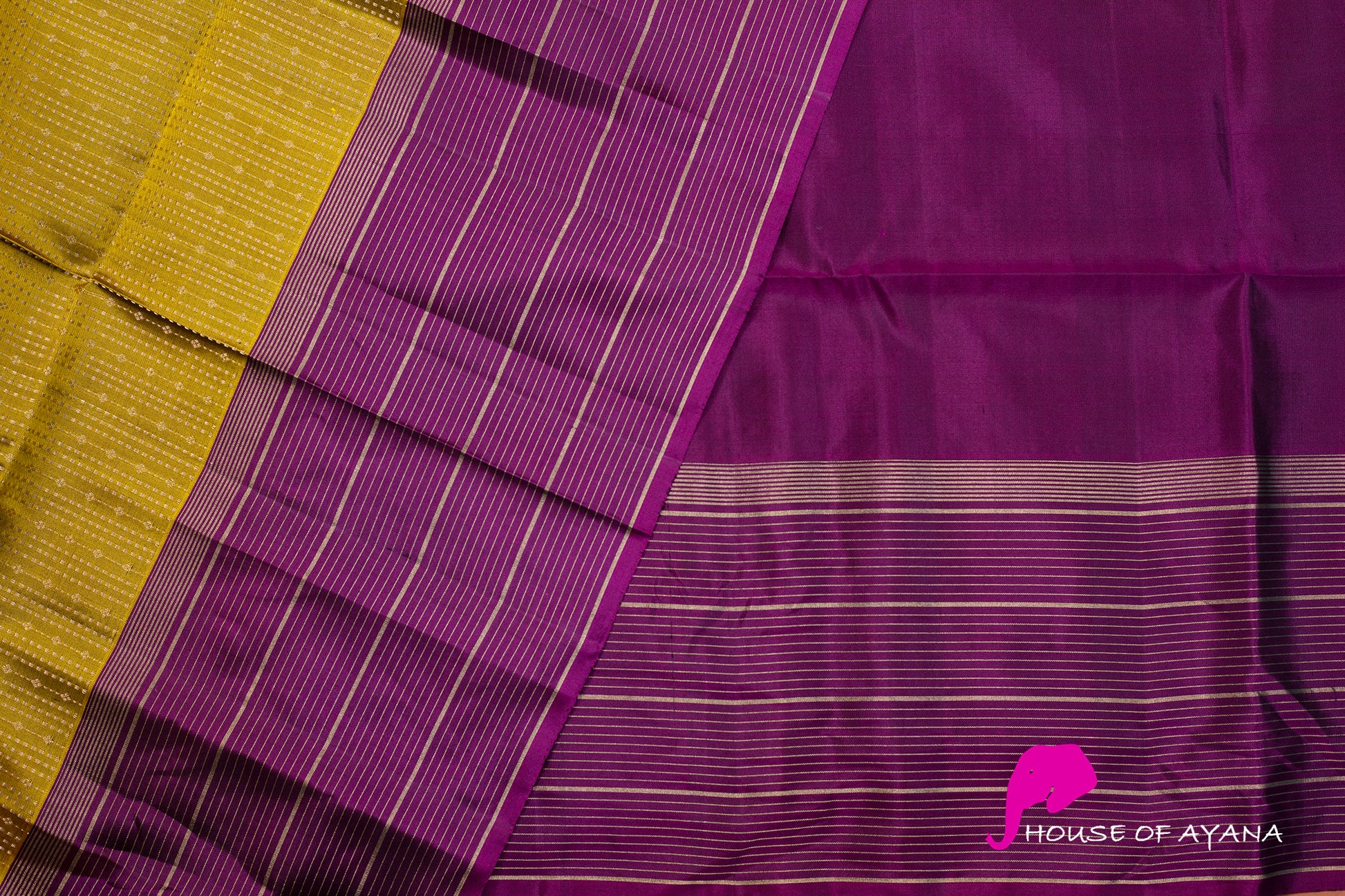 - Kanjivaram lightweight silk saree, handwoven with contrast zari borders and pallu