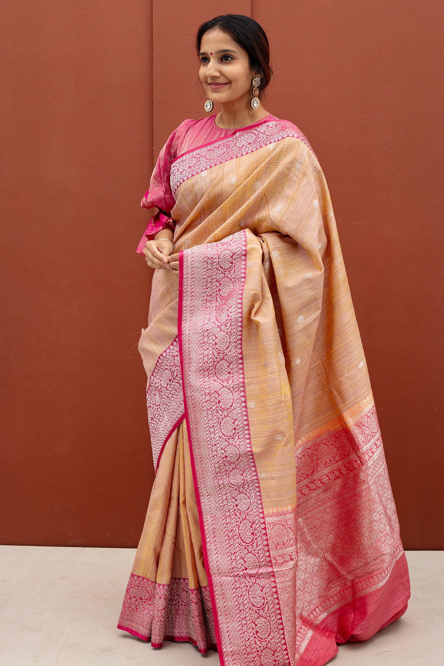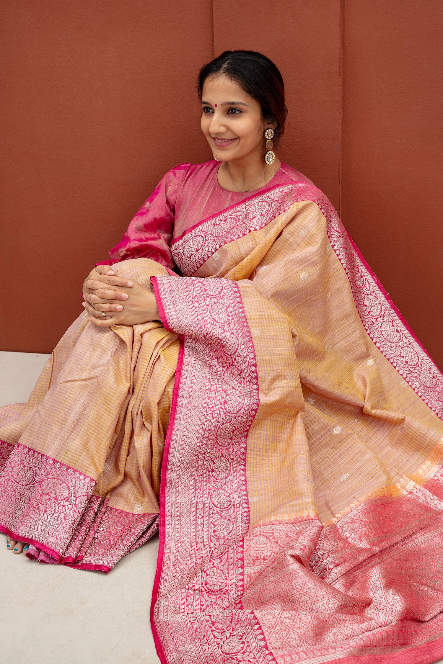 - Contrast banaras silk blouse with coordinated borders (as shown in last image)